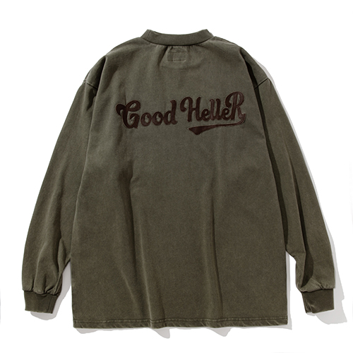 LEATHER WAPPEN USED WASH L/S POCKET TSHIRT / OLIVE “XL SIZE ONLY”