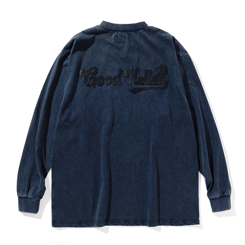 LEATHER WAPPEN USED WASH L/S POCKET TSHIRT / NAVY “L SIZE ONLY”