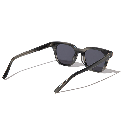 弾力性があり衝撃の強いアセテートフレームをベースに、日本人の顔サイズに合わせた程良い大きさのフラット型ウェリントンタイプグラシーズとなります。サイドにはブランドロゴ、カンパニー名を同系色にてでさり気なくプリント。レンズは黒、ブルー、グリーン、クリアと4色展開にてリリースとなります。これからの時期に重宝できるのでは。