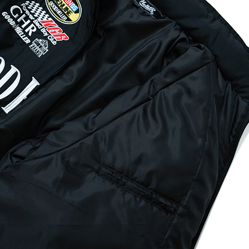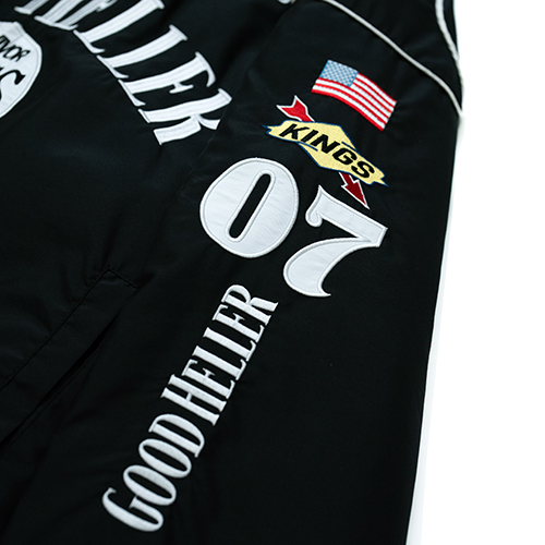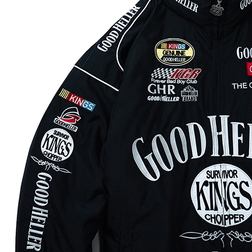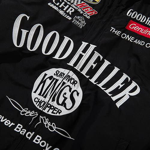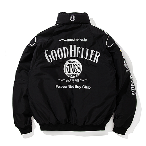 Home / ALL ITEMS / JACKET / KINGS LIMITED EDITION JD RACING STAND COLLAR JACKET “SOLD OUT” KINGS LIMITED EDITION JD RACING STAND COLLAR JACKET “SOLD OUT” SKU: N/A Categories: ALL ITEMS, JACKET Tag: GH-25AW003SP ¥48,400 SIZE Choose an optionMLXLClear KINGS LIMITED EDITION JD RACING STAND COLLAR JACKET "SOLD OUT" quantity Add to cart Additional information COLOR BLACK SIZE M, L, XL Related products GH LOGO LINE MIDLE SOX / BLUE×YELLOW ¥2,200 Add to cart GH COMPANY WAPPEN L/S WORK SHIRT / WHITE ¥13,750 Select options EMBROIDERY WORK JACKET / BLK×GREEN ¥33,000 Select options SATIN STADIUM JCKET / GREEN “XL SIZE ONLY” ¥38,500 Select options 熊本県の取扱店”KINGS”とのスペシャルアイテム第五弾。アルコールメーカーのスポンサードレーシングジャケットをベースに、フロントにはアーチ型でGOOD HELLERのロゴを刺繍、同じく、その下にはサークル型でKINGSのロゴを。両胸や背面首周りなどにも各スポンサーロゴを両者のロゴにて一つ一つオリジナルで製作。シルエットは身幅をややゆったり、着丈はやや短めに設定。首元のスタンドカラー部分は防寒性を考慮し高さをつけ、ややタイト目に設定。裏地には中綿入りのやや肉厚なポリエステル生地に。フロントジップのトップ部分もオリジナルでアメリカンテイストオリジナルロゴトップを製作。両社の想いがふんだんに詰まったスペシャルな一着の完成。 KINGS並びに東京店、オフィシャルウェブのみでの販売となります。 SPEC MATERIAL : NYLON55%,POLYESTER45% SIZE : M,L,XL COLOR :BLK SIZE SPEC 身丈 M69cm L71cm XL73cm 身巾 M65cm L67cm XL69cm 裄丈 M91cm L92.5cm XL94cm
