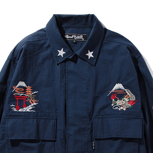 Home / ALL ITEMS / JACKET / KOR ARMY TYPE SOUVENIR JACKET / NAVY “XL SIZE ONLY” KOR ARMY TYPE SOUVENIR JACKET / NAVY “XL SIZE ONLY” SKU: N/A Categories: ALL ITEMS, JACKET Tag: GH-25AW001 ¥37,400 SIZE Choose an optionMLXLClear KOR ARMY TYPE SOUVENIR JACKET / NAVY "XL SIZE ONLY" quantity Add to cart Additional information COLOR NAVY SIZE M, L, XL Related products GH LOGO LINE MIDLE SOX / BLUE×YELLOW ¥2,200 Add to cart GH COMPANY WAPPEN L/S WORK SHIRT / WHITE ¥13,750 Select options GH COMPANY WAPPEN L/S WORK SHIRT / NAVY ¥13,750 Select options BOX LOGO CREW NECK SWEAT / NAVY “M & XL ONLY” ¥12,100 Select options 程良い肉感のリップストップコットン、大ぶりなフラップ付きマチポケット、比翼付きのフロントボタンを採用し、裾はドローコード付きにしたシャツジャケットタイプにもなる秋らしい、ミリタリージャケットを作製し、フロント両胸、袖、背面、衿と贅沢にスーベニア刺繍を施した一枚。 SPEC MATERIAL : COTTON100% SIZE : M,L,XL COLLOR : NAVY SIZE SPEC 着丈 M73cm L75cm XL77cm 身巾 M63cm L65cm XL67cm 肩巾 M52.5cm L53.5cm XL54.5cm 袖丈 M58cm L59.5cm XL61cm